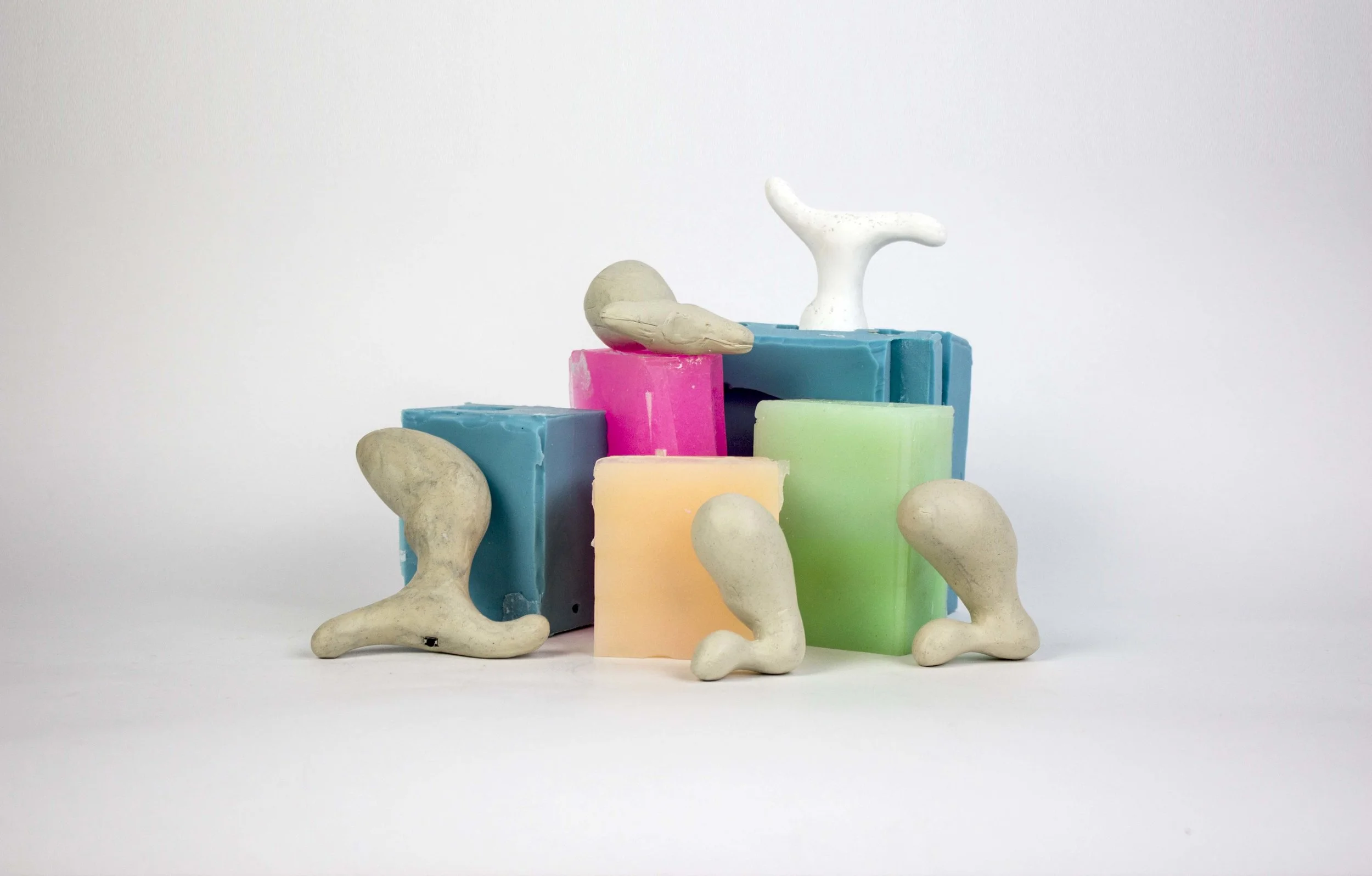 The prostate is stimulated internally from the head and externally by the base. User feedback determined the appropriate direction to modify the form. Each form was modeled with clay and then cast with hard, body-safe silicone.
